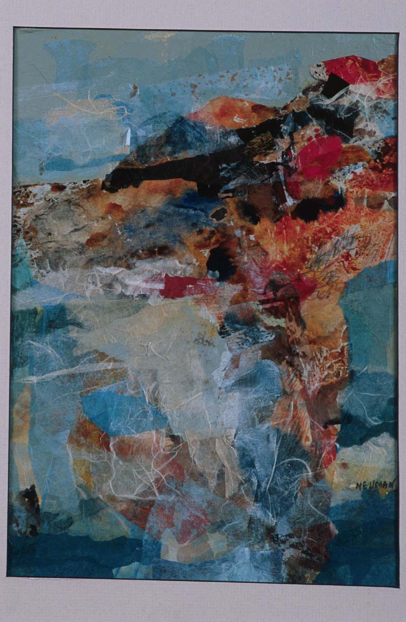 - Mesa - Acrylic collage 10W x 12L Handpainted collage on french archival paper Tan mat, White Frame - $1200.00