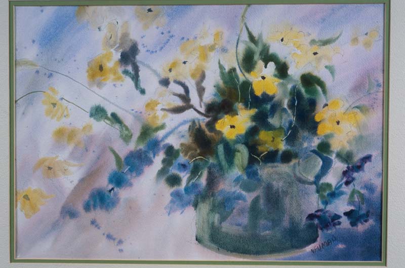- Purple and Yellow - Watercolor, 22W x 15L, Realist floral arrangement on archival french paper, Matted, gold frame $1200.00